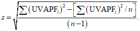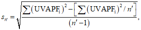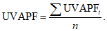 UVAPF солнцезащитной продукции представляет собой среднее арифметическое значений UVAPFi общего количества (n) пластин, выраженное с точностью до первого десятичного знака: