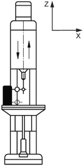 Примечания и ссылки на ISO 230-1:2012, 12.4.1 и 12.4.8 Проверку перпендикулярности следует проводить сначала со столом в верхнем положении 1, а затем в нижнем положении 2. Шпиндельная головка и стол зафиксированы. |