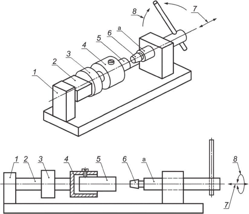1 - приложение вращающего момента или осевого усилия