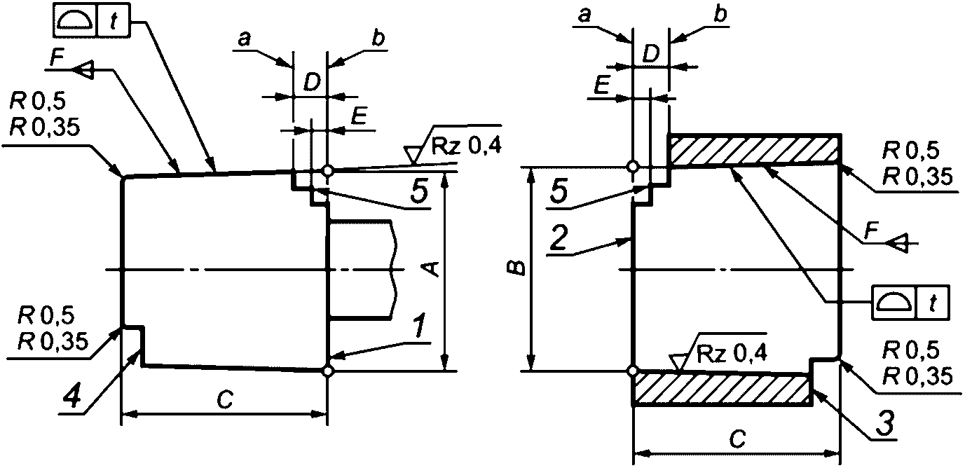рисунке 2, но со всеми допусками, сниженными до +/- 0,005 мм, и чистотой обработки поверхности 0,4 мкм.