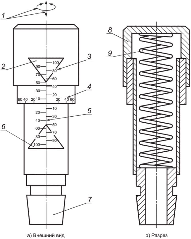 7 - испытательный конический патрубок размером 22 мм;