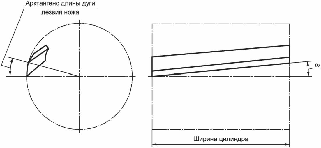 ![]() Рисунок 1 - Угол наклона ножа цилиндрического режущего оборудования | ||