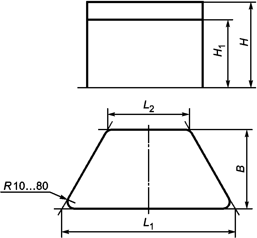 Примечание - Измерения размеров L1 и L2 проводят в точках пересечения линий продолжения сторон трапеции.