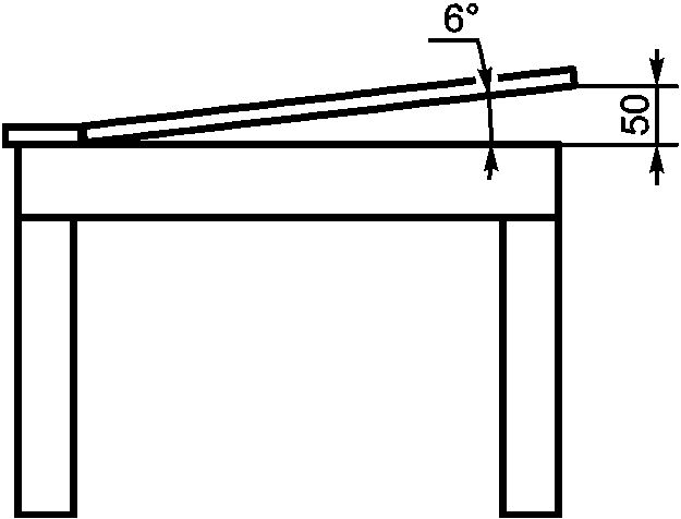 5.2 Крышка двухместного детского стола может иметь приспособление, позволяющее придавать ей наклонное положение под углом от 7° до 12°. Уменьшение высоты стола со стороны сидящего при переводе крышки из горизонтального положения в наклонное допускается не более чем на 10 мм.