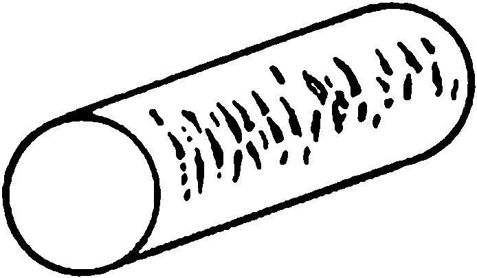3.2.9 раскатанный [раскованный] пузырь (Нрк. волосная трещина, нить, подкорковый пузырь, свищ, сотовый пузырь, трещина от пузыря): Дефект поверхности в виде тонкого прямолинейного продольного углубления различной протяженности и глубины, образовавшегося при раскатке [расковке] наружного или подповерхностного газового пузыря слитка или непрерывнолитой заготовки (рисунок 19, рисунок Б.19). ![]() а - дефект на плоском прокате ![]() б - дефект на сортовом прокате | de | Eingewalzte Blase |