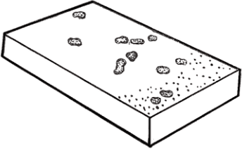 Примечания 1 Дефект чаще имеет групповое расположение. Иногда встречается в единичном виде. 2 В микроструктуре полость дефекта имеет капсуловидную форму, обычно заполнена окалиной и располагается перпендикулярно или под различными углами к поверхности заготовки. К дефекту прилегает обезуглероженная зона с четкими границами, насыщенная мелкими частицами оксидов, окаймленная перлитными зернами и имеющая характерную форму мешка. | ||
