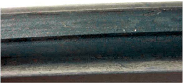 3.1.11 риска (Нрк. задир): Дефект поверхности в виде продольного линейного углубления без выступающих кромок, представляющий собой повреждение поверхности заготовки приварами металла или шлака, находящимися на поверхности направляющих роликов, роликов правки или неподвижных направляющих (рисунок 10, рисунок Б.9). ![]() Примечания 1 Дефект может быть непрерывным или периодически повторяющимся, единичным или групповым. 2 Стенки дефекта гладкие, полость обычно заполнена окалиной, могут присутствовать частицы налипшей шлакообразующей смеси. При последующих операциях края дефекта могут прикатываться. 3 Дефект не сопровождается изменением микроструктуры и неметаллическими включениями. | ||