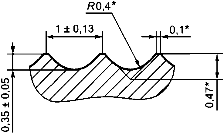 4.4 Профиль металлического зубчатого основания с шагом 1,0 мм считают основным и используют в уплотнениях по умолчанию. Профиль металлического зубчатого основания с шагом 1,5 мм применяют по согласованию с производителем уплотнений при ремонте сосудов и аппаратов в зависимости от состояния фланцев.