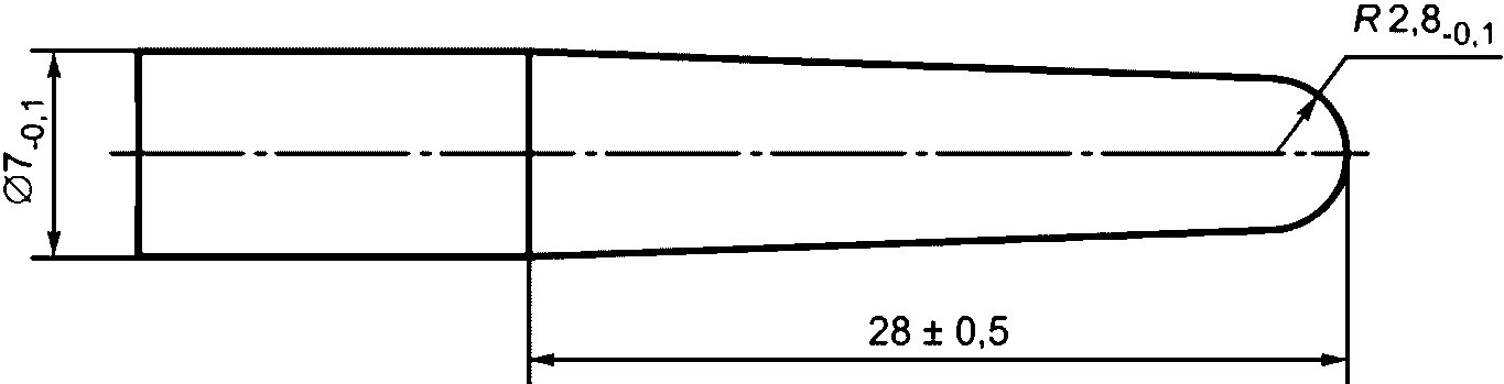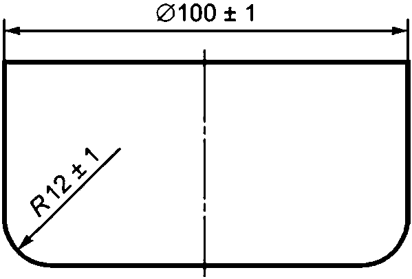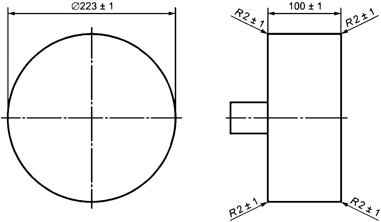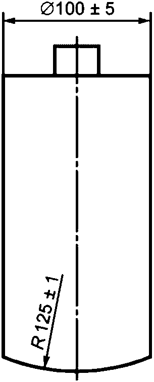 5.17.1.2 Элемент нагрузочный (деталь-прокладка) диаметром (100 +/- 2) мм из твердого материала (полимерный или другой твердый материал, такой как сталь, текстолит) для приложения нагрузки. Рабочая (прикладываемая) сторона должна быть покрыта мягким материалом, например войлоком толщиной 5 мм, исключающим повреждение защитного покрытия кровати.