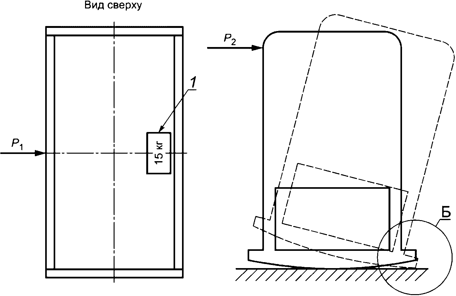 рисунок 29б), и проверяют отсутствие движения перемещения ограждения. Точка приложения нагрузки