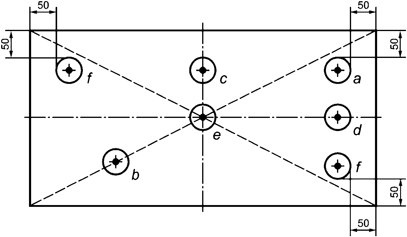 д) точки расположения нагрузочных элементов (площадок) - +/- 5 мм;
