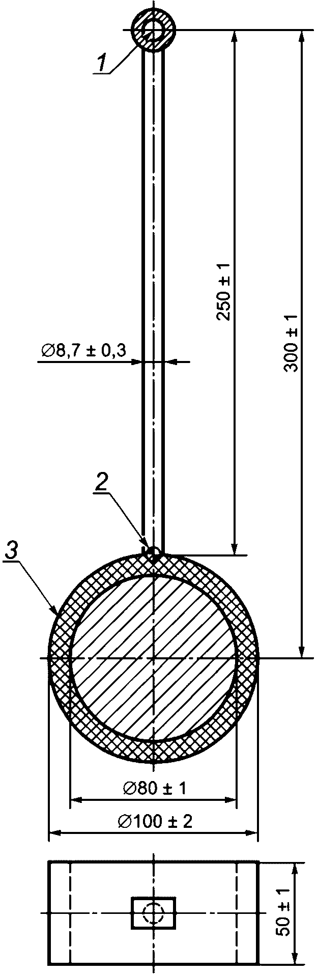L, равную (250 +/- 25) мм (см.