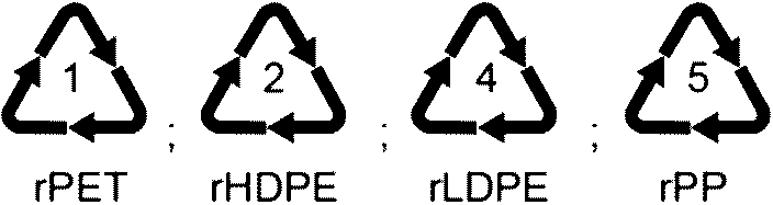 Примечание - Маркировка материала упаковки, изготовленного из первичного полиэтилентерефталата с добавлением рециклированного полиэтилентерефталата, приведена в