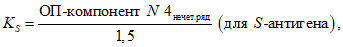 Определяют пороговое значение оптической плотности (KS или KR) наличия специфических антител к S- и R-антигенам по формулам: