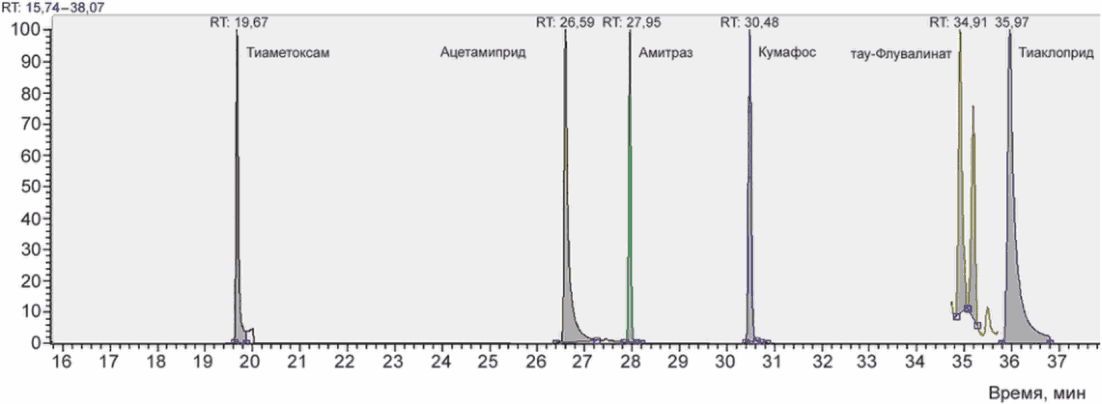 т-Флувалинат | 34,91 (пик 1) 35,07 (пик 2) |