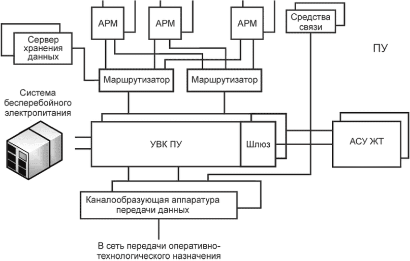 - устройства сопряжения УВК с другими информационными комплексами железнодорожного транспорта (АСУ ЖТ), включая средства кибербезопасности;