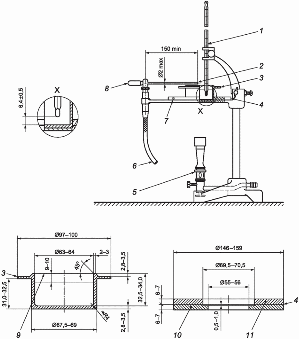 6.1 Аппарат для определения температур вспышки и воспламенения в открытом тигле по методу Кливленда