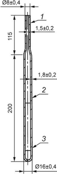 1 - место припайки плавлением; 2 - метка на 10 см3;