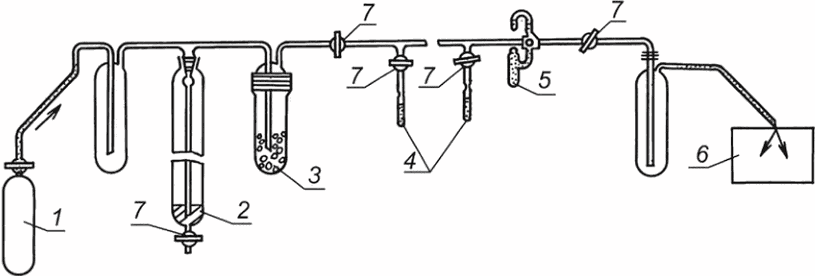 5 - вакуумметр; 6 - вакуумный насос; 7 - кран