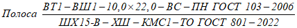 В.4 Полоса горячекатаная, обычной точности прокатки по толщине (ВТ1) и ширине (ВШ1), толщиной 10,0 мм, шириной 22,0 мм, обычной серповидности (ВС), нормальной плоскостности (ПН) по