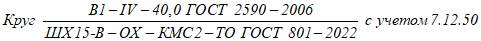 ГОСТ 2590 из стали марки ШХ15-В, для холодной механической обработки (ОХ), с требованиями к макроструктуре проката, произведенного из непрерывнолитой заготовки (КМС2), термически обработанный (ТО), с контролем макроструктуры магнитным методом (с учетом