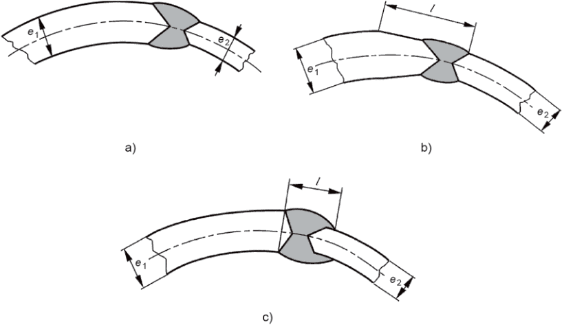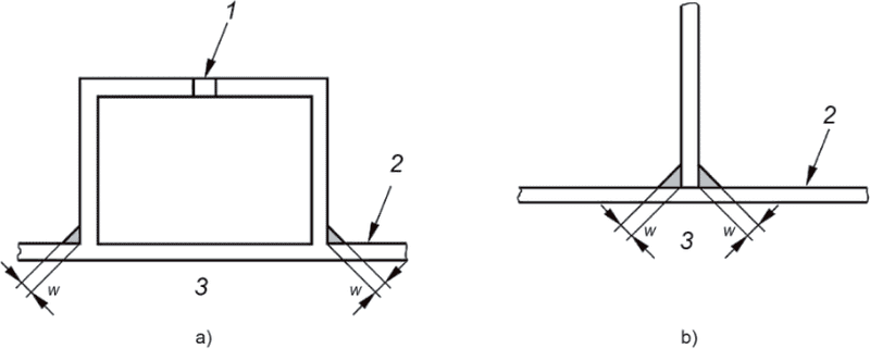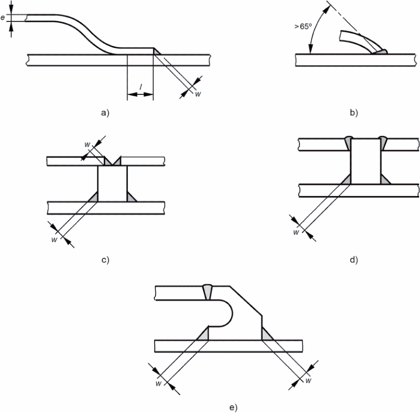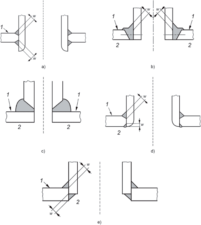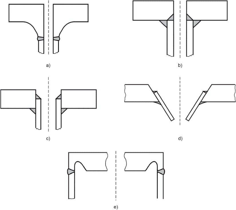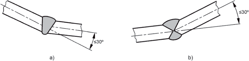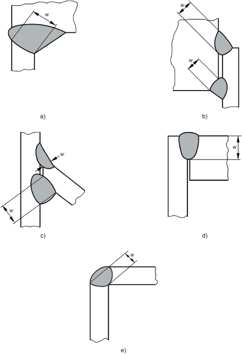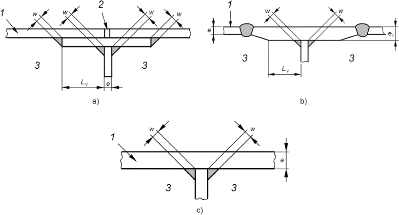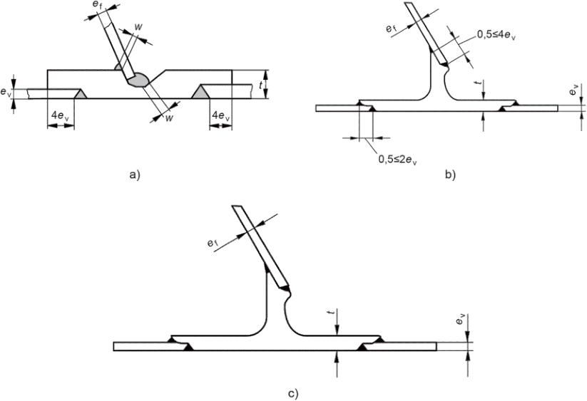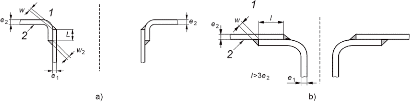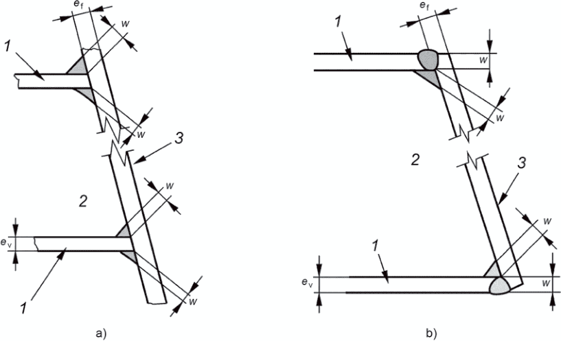a) для угловых соединений с двусторонним сварным швом толщина каждого сварного шва должна быть как минимум в 0,7 раза больше толщины самой тонкой части (см.