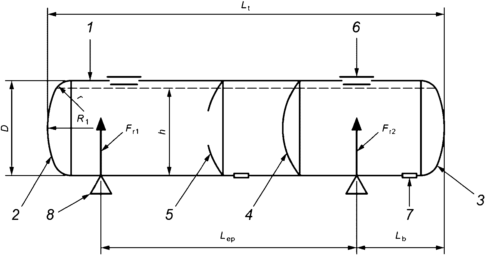 1 - корпус; 2 - внутри цистерны; 3 - сферическое днище