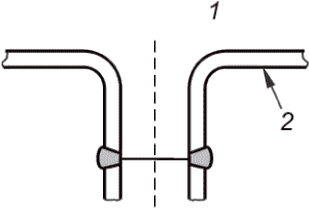 c) двумя сварными швами, толщина каждого из которых в 0,7 раза больше толщины самой тонкой части (см.