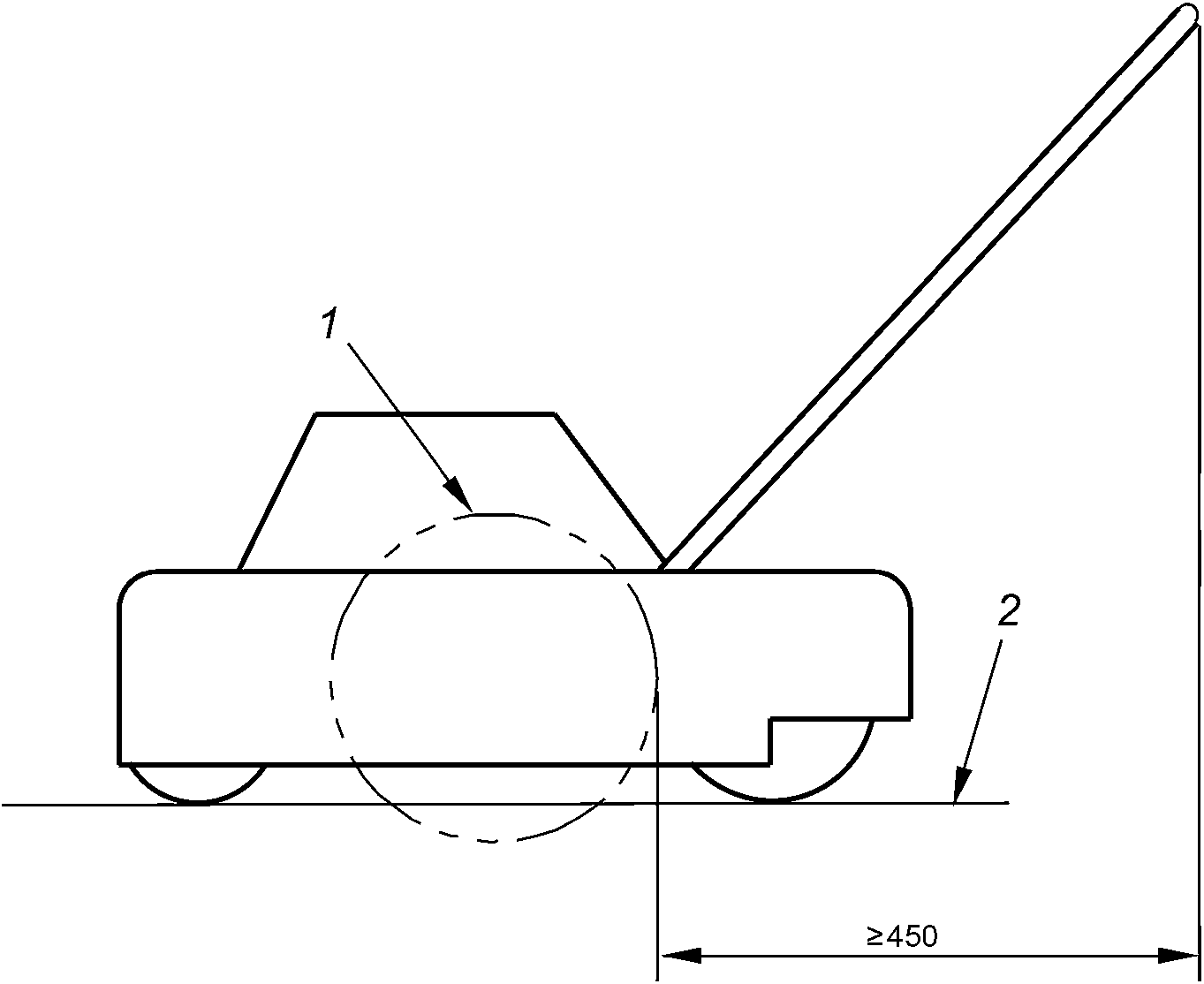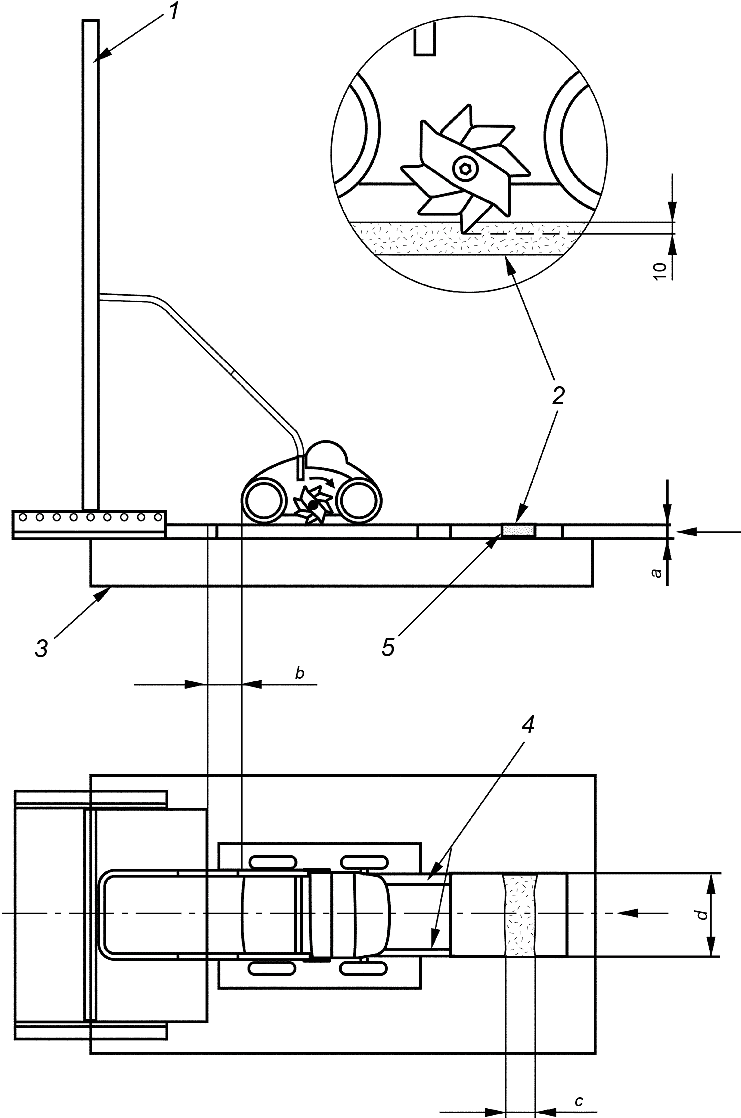 Измерения выполняют на неподвижной машине, все тяговые приводы должны быть отключены, зубья должны быть установлены в самое верхнее рабочее положение. Если в этом положении зубья все еще касаются поверхности земли, опорные элементы машины (например, колеса, гусеницы и т.д.) должны быть установлены на опорные блоки, обеспечивающие необходимый просвет. Опорные блоки должны быть минимально возможного размера, чтобы обеспечить безопасность при испытаниях, и расположены на достаточном расстоянии от вращающихся зубьев (исключающем их контакт).