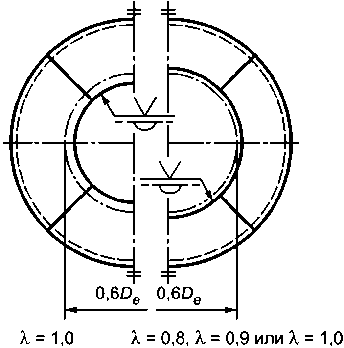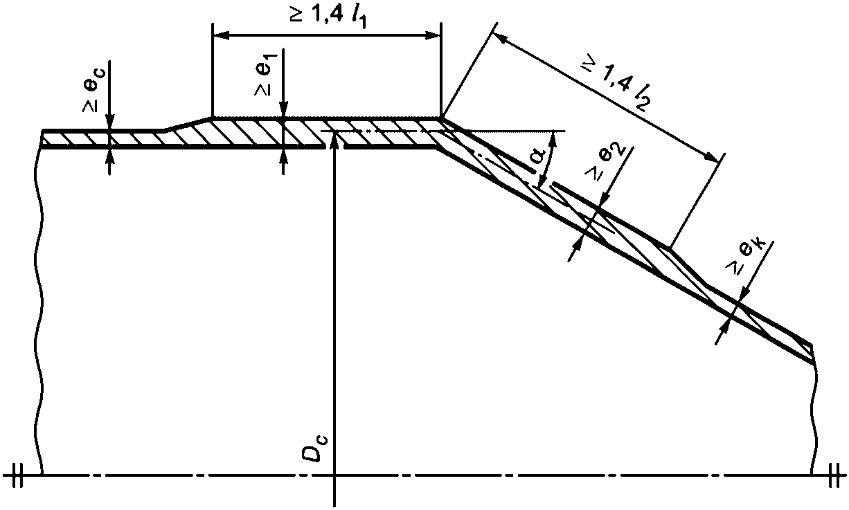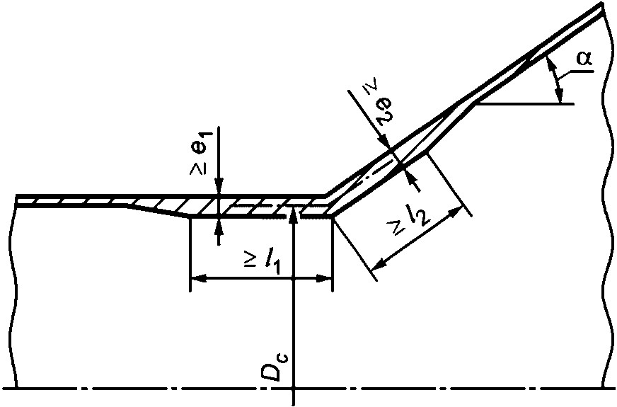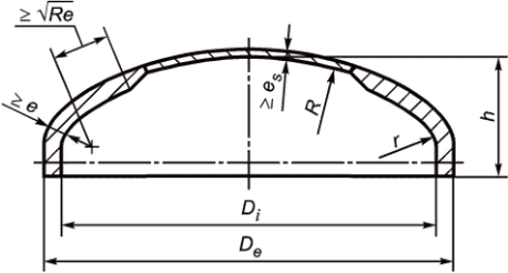 Сферические днища и перегородки могут считаться устойчивыми к ударному давлению взрыва при соблюдении следующих условий, даже если расчет приводил бы к более высокой толщине стенок, чем предусмотрено для цилиндрической части цистерны: