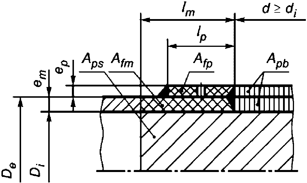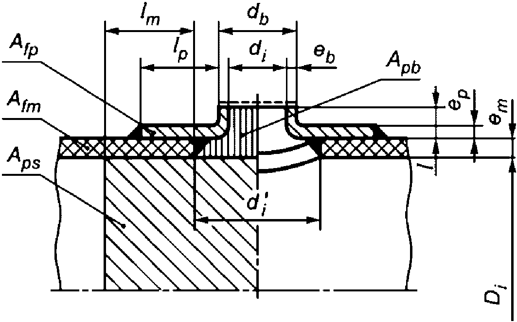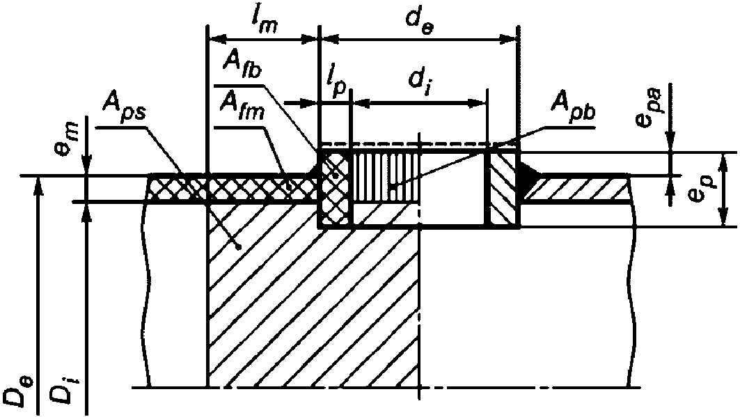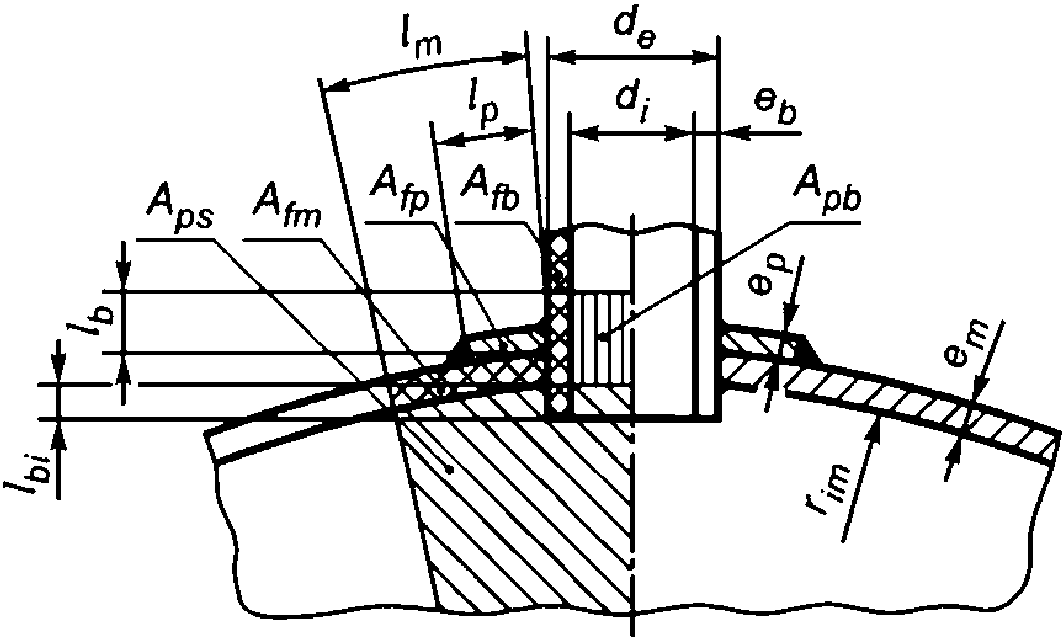 Afm = em·lm = 3,64·91,57 = 333,31 мм2 Afp = lp·ep = 91,57·3,64 = 333,61 мм2 Afb = (lb + em)·eb = (50,2 + 3,64)·5 = 269,2 мм2. | |