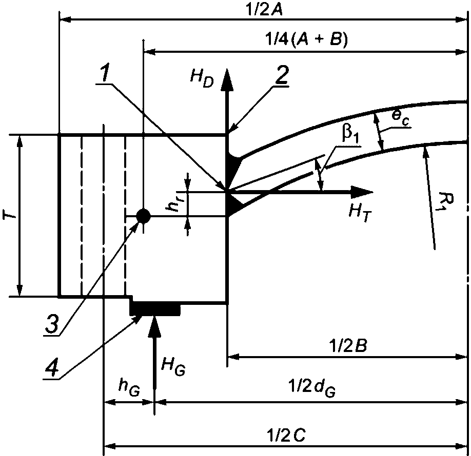 В качестве минимальной толщины стенки e для выпуклого днища выбирают наибольшее значение, полученное в результате расчетов по ответвлениям A - D: