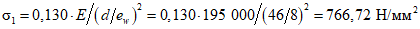 В качестве минимальной толщины стенки e для цилиндрической части корпуса цистерны выбирают наибольшее значение, полученное в результате расчетов по ответвлениям A - D: