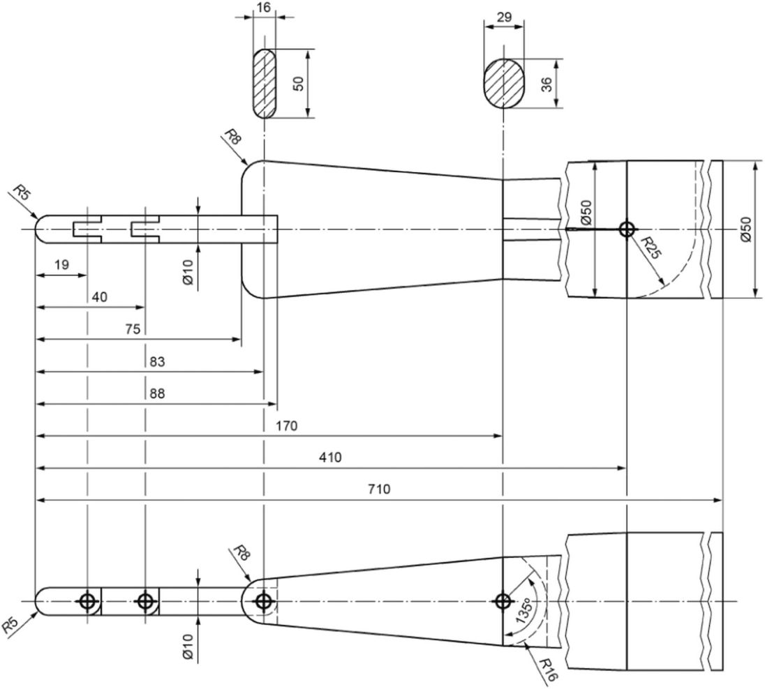 рисунке D.1, не должны контактировать с опасными движущимися частями, если они вводятся в загрузочные и разгрузочные отверстия, при условиях, указанных ниже, до предела, ограниченного их длиной, формой и шарнирными соединениями. Все испытания с образцом должны начинаться с испытательного приспособления в прямом положении, для пальцев и локтей шарнирные соединения испытательного приспособления должны позволять вращение на угол 90°, а для запястья - на углы плюс 90° и минус 45°. Движения шарнирных соединений испытательного приспособления должны быть настолько свободны, чтобы они могли легко вращаться при введении испытательного приспособления в отверстие. Испытательные приспособления должны вводиться в отверстие с усилием, не превышающим 20 Н.