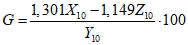 Желтизна ткани G должна быть G = 25 +/- 2 при определении по формуле