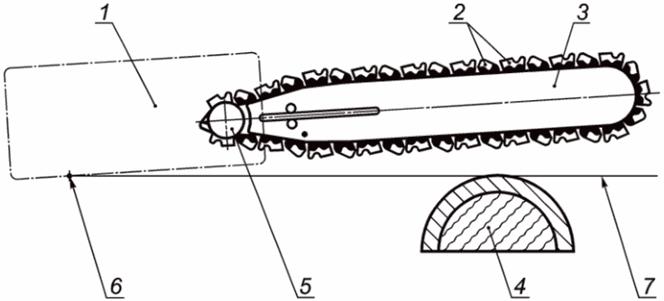 цепная пила (chainsaw): Портативная пила с приводом от двигателя с зубьями на цепи пилы.