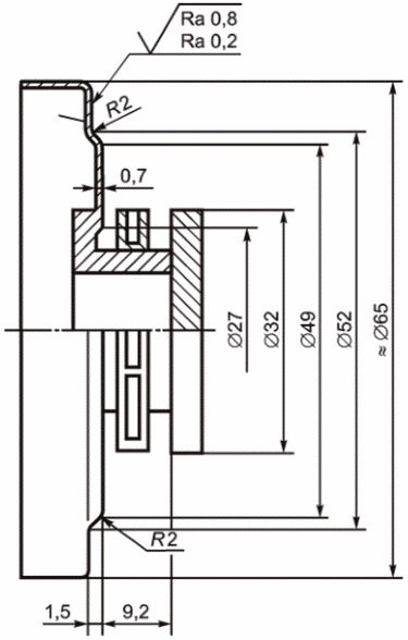 - радиус профиля: (2,4 +/- 0,2) мм;