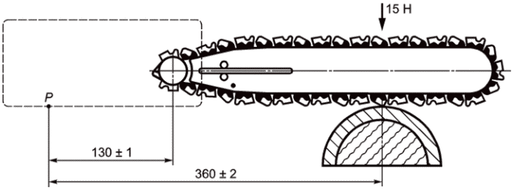 Испытательная установка, описанная в настоящем стандарте, разработана для применения движущейся цепи пилы к испытуемому образцу таким образом, чтобы можно было контролировать как скорость цепи, так и количество кинетической энергии, необходимой для разрезания.