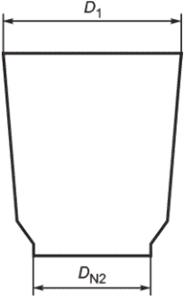d) номинальное поперечное сечение конца корпуса для банок с зауженной или расширенной горловиной согласно