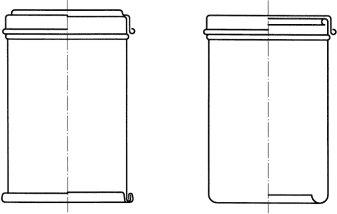 4.3.1 Для банок, состоящих из трех частей, закатывают нижний конец к корпусу обычным способом (для банок, описанных в