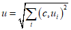 Вклад в совокупную неопределенность, связанную с измерением акустической эффективности, зависит от каждой из исходных данных, их соответствующих вероятностных распределений и коэффициентов чувствительности ci. Коэффициенты чувствительности являются мерой того, как на акустическую эффективность влияют изменения значений соответствующих исходных данных.