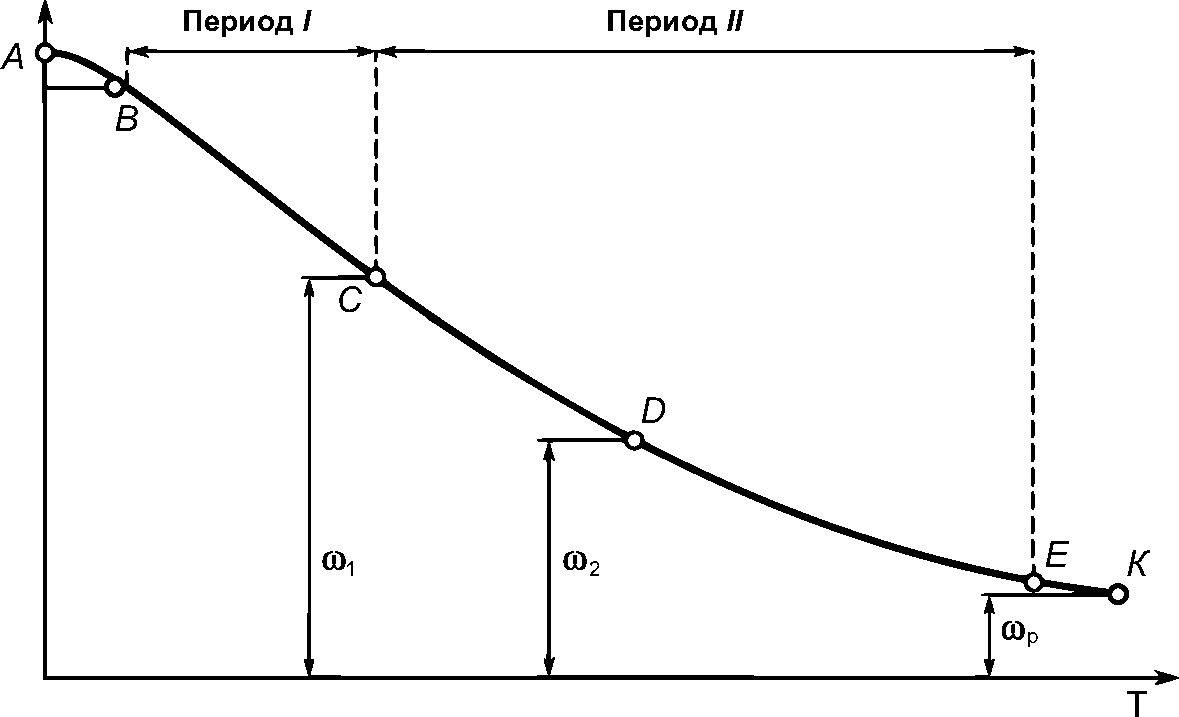 рисунка А.1, в общем случае процесс сушки состоит из двух участков, соответствующих различным периодам.