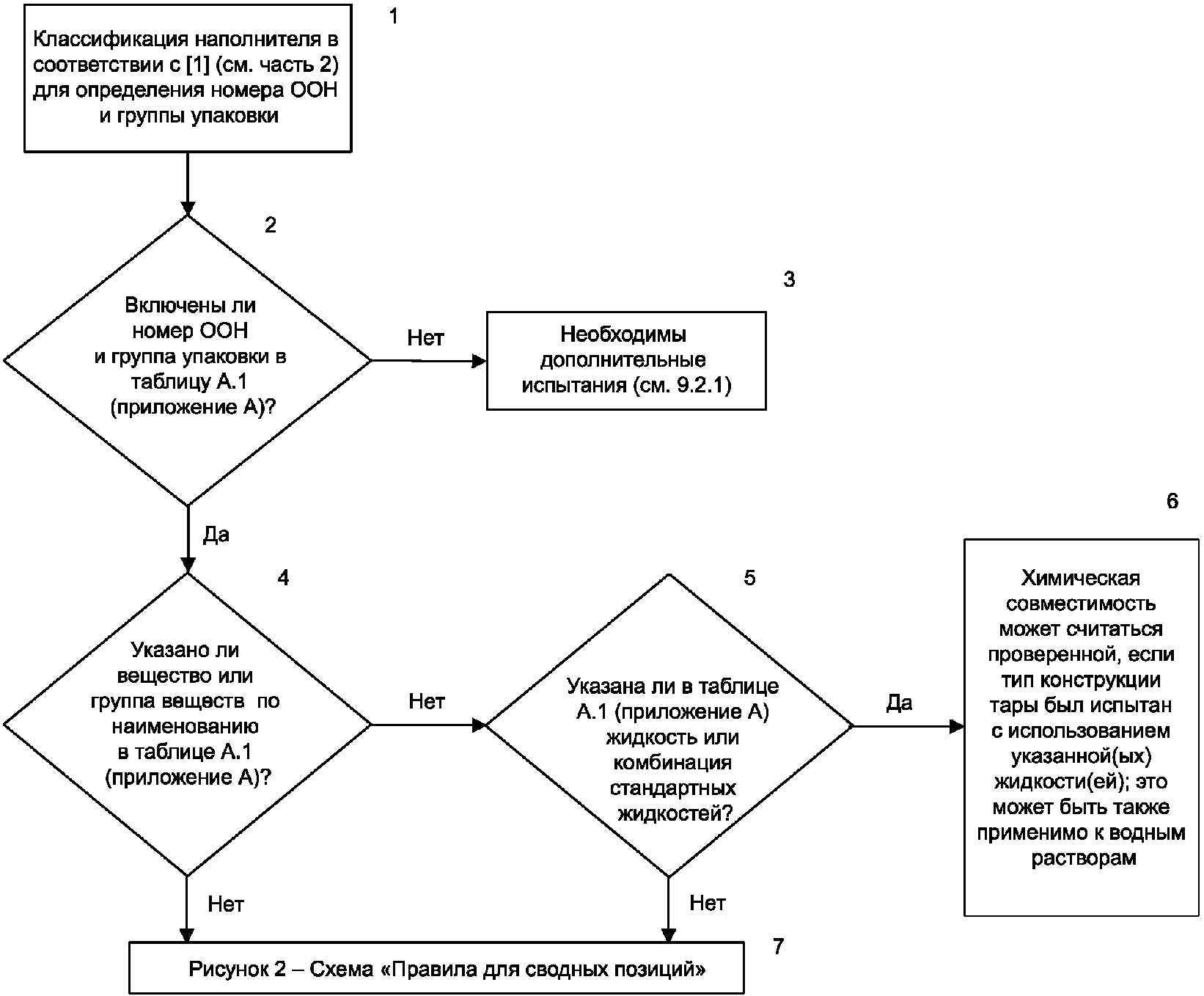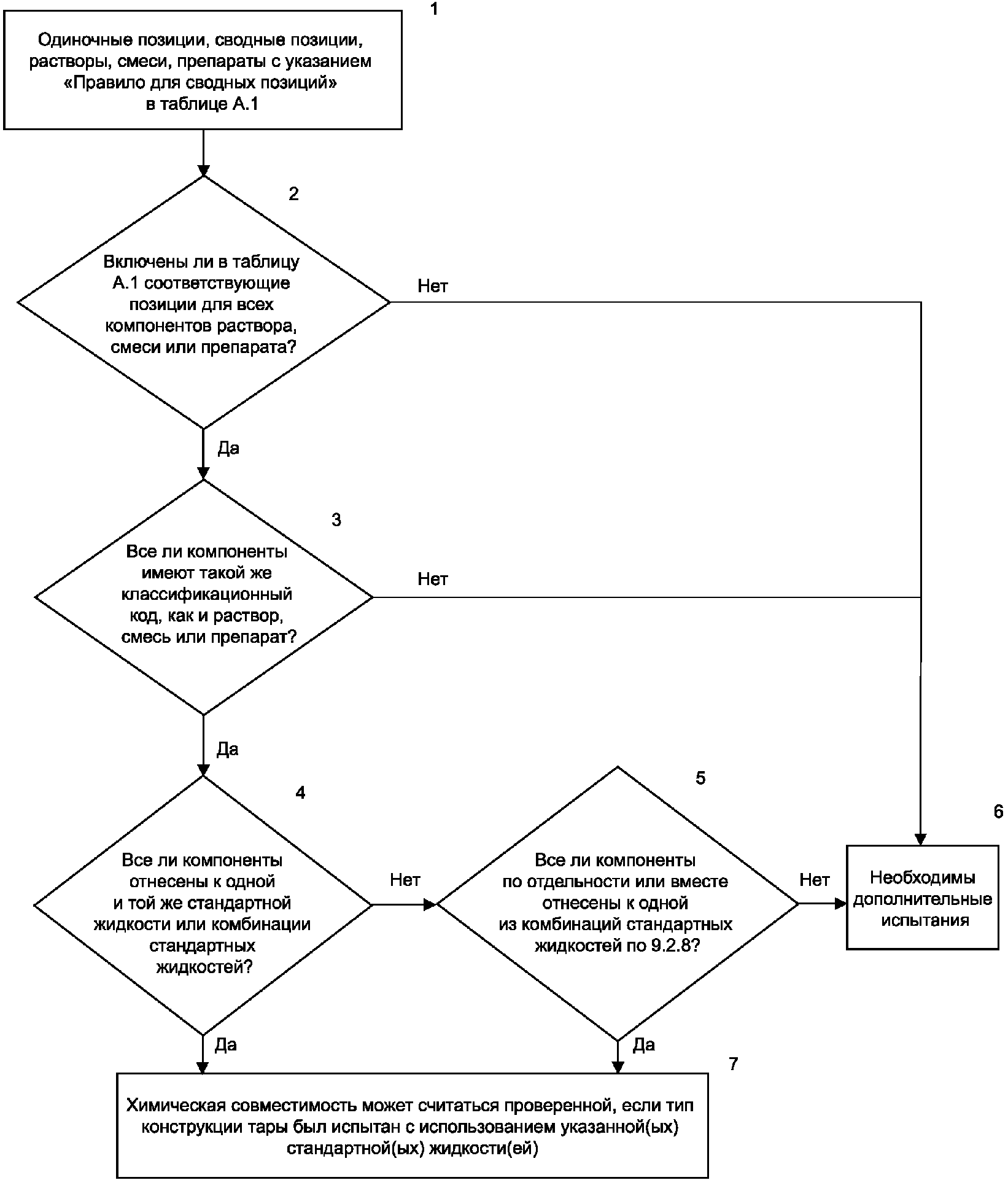 <*> Проводят испытания тары, предназначенной для жидкостей. Примечания 1 Знак "+" означает, что испытания проводят, знак "-" - не проводят. 2 Нормы показателей качества тары устанавливают в соответствии с группой упаковки, для которой образец проектного типа выдержал испытание. 3 Испытания комбинированной тары допускается не проводить при соблюдении следующих условий: - в наружной таре объединены различные типы внутренней тары, прошедшие испытания в той же наружной таре; - в наружной таре размещено меньшее (по сравнению с первоначально испытанным) количество внутренней тары с применением прокладочного материала, предотвращающего ее смещение; - в наружной таре размещена внутренняя тара равного или меньшего размера по сравнению с первоначально испытанной при условии, что и внутренняя тара имеет такую же конструкцию и форму; - материал внутренней тары обладает равной или большей прочностью при сбрасывании и штабелировании; - внутренняя тара имеет отверстия равного или меньшего размера, а их укупорка (крышка, пробка) имеет одинаковую конструкцию; - для заполнения пустот и предотвращения смещения внутренней тары применяют достаточное количество прокладочного материала. 4 Для комбинированной тары проводят комплекс испытаний, предписанный для наружной тары совместно с внутренней тарой. При проведении испытаний тара должна содержать в себе внутреннюю тару. Классификацию комбинированной тары осуществляют по наружной таре; для внутренней тары, предназначенной для жидкостей, перемещаемых воздушным транспортом, проводят испытания по [3]. |