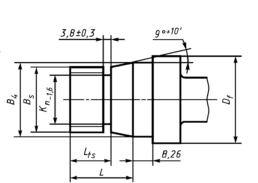 3.2.2. Ниппель: часть головки штанги, сопрягаемая с торцом упорного бурта и включающая в себя зарезьбовую канавку, резьбу и фаску.