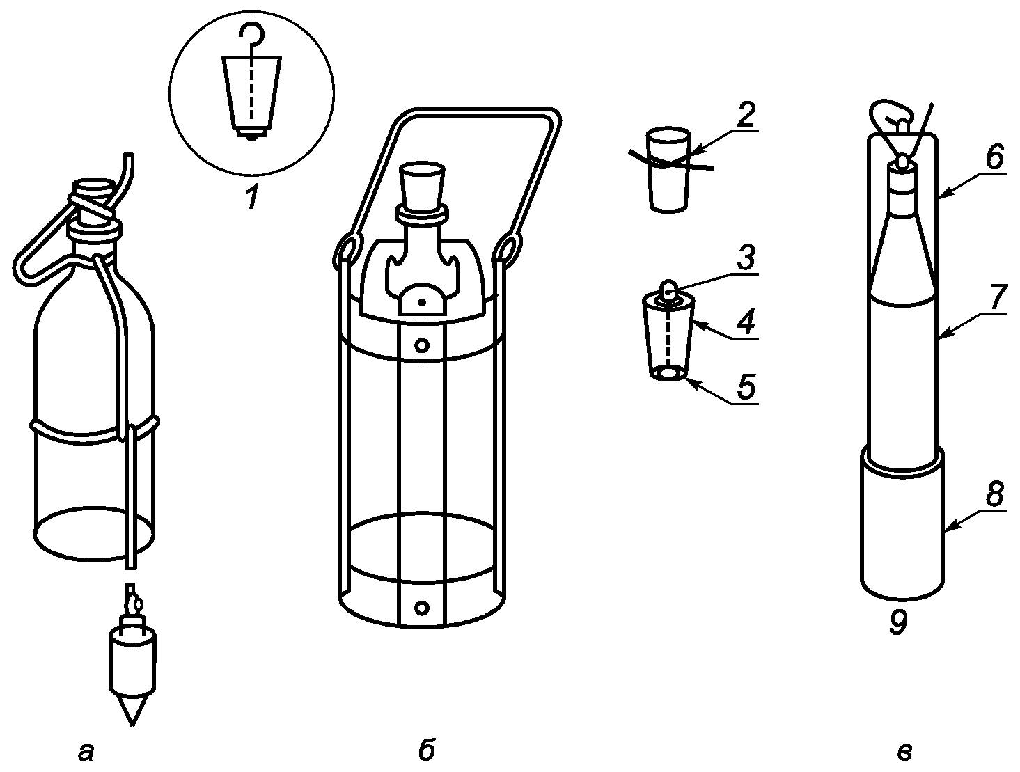 2.1.2. Проба, составленная из проб, взятых со всех уровней жидкости (средняя проба из всех слоев жидкости) (all-levels sample): проба, полученная с помощью закрытого стакана или бутылки путем погружения их как можно ближе к уровню отбора, последующего открывания пробоотборника и его подъема с такой скоростью, чтобы при извлечении из жидкости пробоотборник был заполнен приблизительно на 3/4 общего объема.