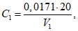 V1 - объем раствора тиосульфата натрия, израсходованный на титрование 20 см3 раствора двухромовокислого калия молярной концентрации 0,1 моль/дм3, см3.