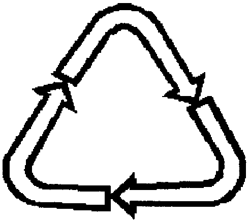 Код идентификации полимерного материала - цифровое обозначение материала. Идентификационный код пластмассы, являющийся международным кодом, применяют для обозначения материала, из которого изготовлено изделие, и упрощения процедуры сортировки изделия перед отправкой на переработку для вторичного использования. Цифру, обозначающую код идентификации пластмассы, помещают внутри петли Мебиуса (треугольника), а под треугольником размещают аббревиатуру, обозначающую тип пластмассы в соответствии с