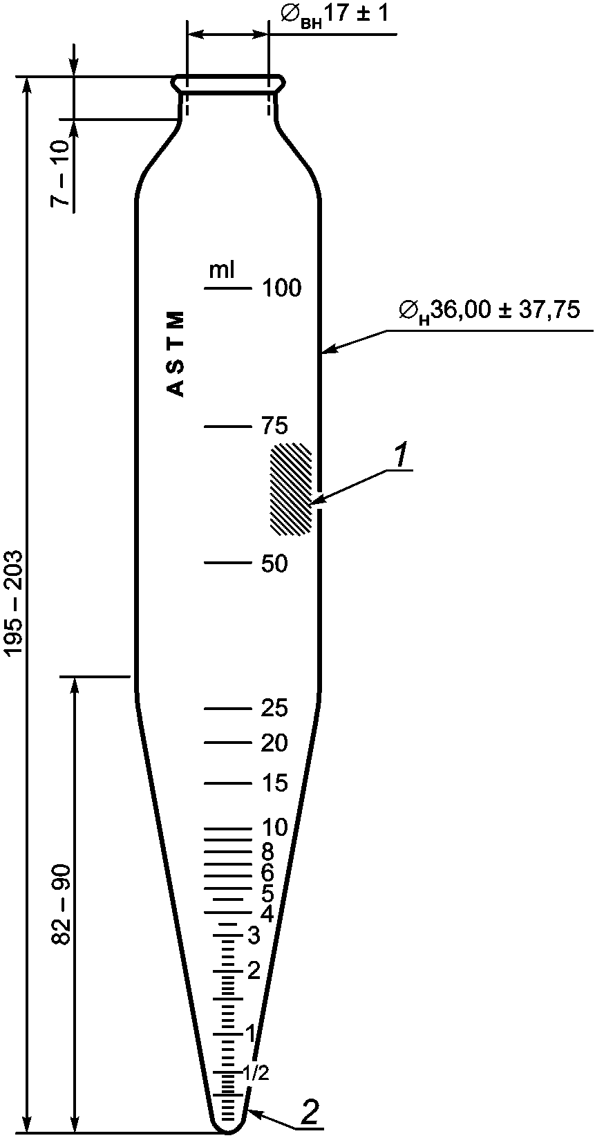 6.1 Коническая центрифужная пробирка из тщательно отожженного стекла с размерами, приведенными на