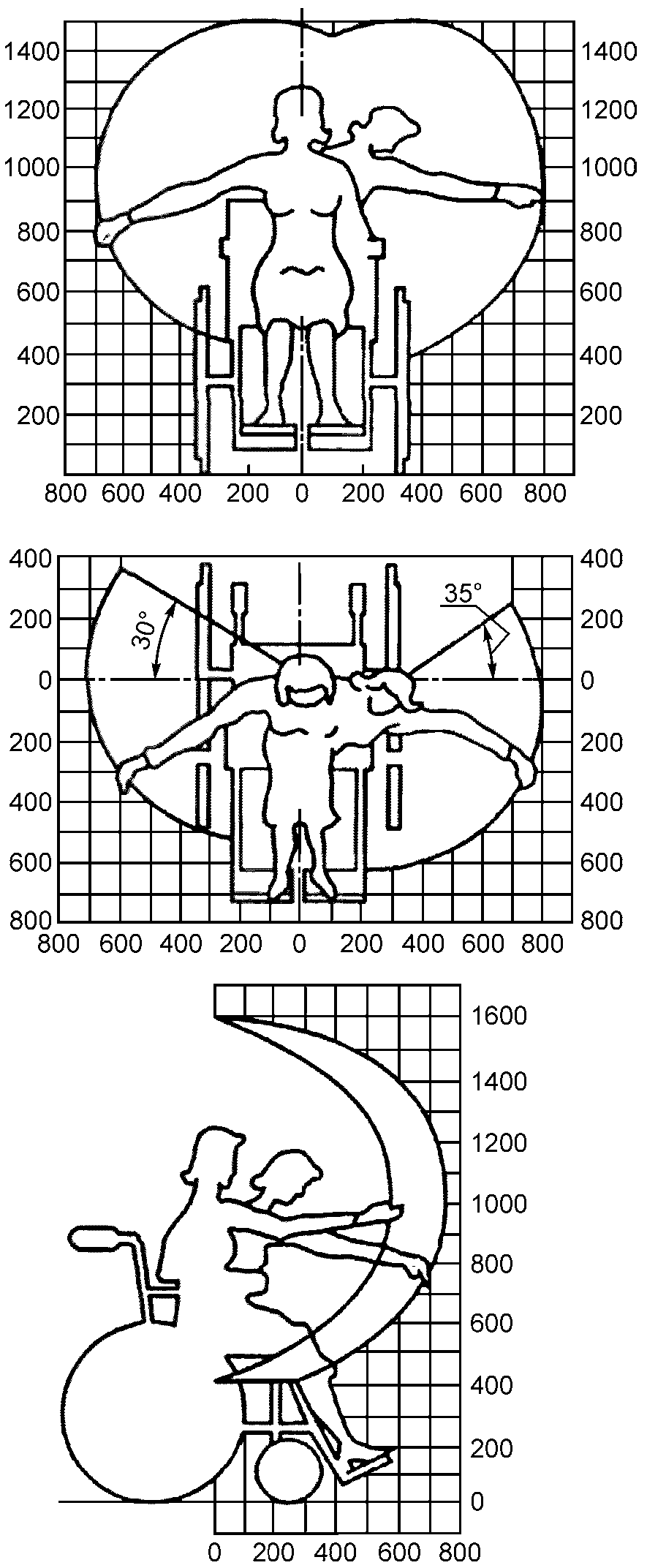 3.3.5 Размеры участков маневрирования (разворота) пассажира-инвалида в кресле-коляске в купе | |