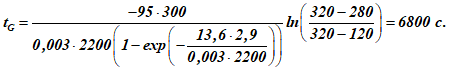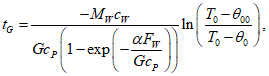 Е.1 Длительность отогрева tG, с, внутреннего сосуда БКТ при постоянном значении расхода греющего газа вычисляют по формуле